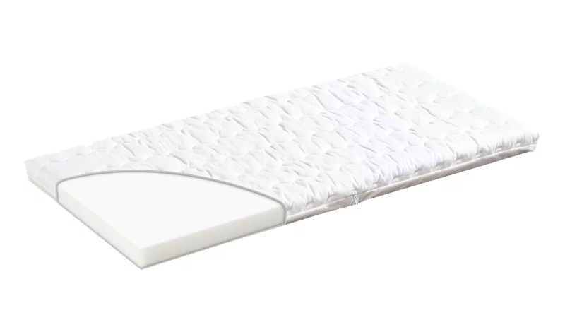 77. Premium Madras til ekstra seng/barneseng model HAJO. Madrassen har integreret fugtbeskyttelse. Betrækket er lavet af 100% bomuld. Kernen er en blød skummadras. Betrækket kan tages af med lynlås og kan vaskes ved 60° grader. Madras også til model JORI. Artikelnummer: 100753. Str. 120 x 60 cm – tykkelse ca. 10 cm. Produceret i Østrig.