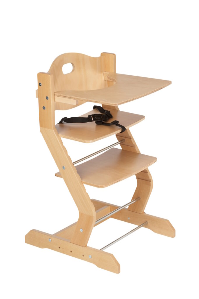 12. Højstol i massiv bøg natur inkl. bøjle og sele. Artikelnummer 101064.