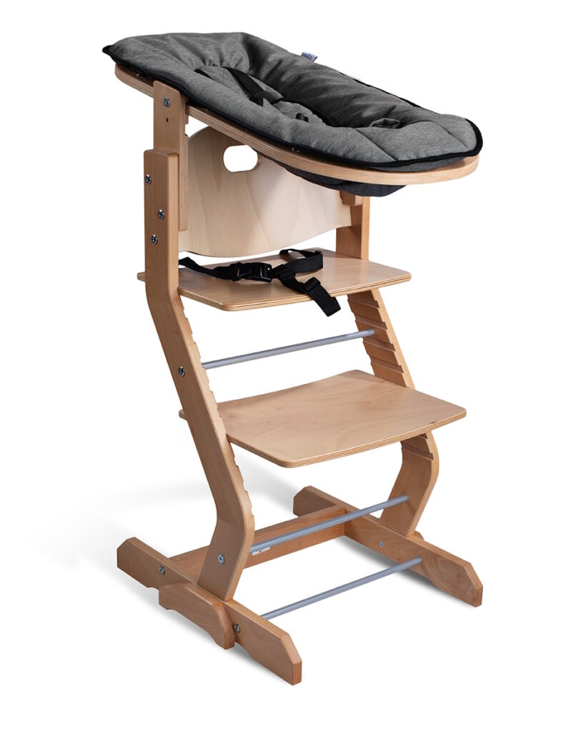 14. Babyindsats i bøg natur og stof i antrasit – grå. Artikelnummer 100283.
