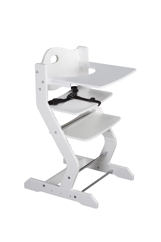 15. Højstol i massiv bøg hvid inkl. bøjle og sele. Artikelnummer 101065.
