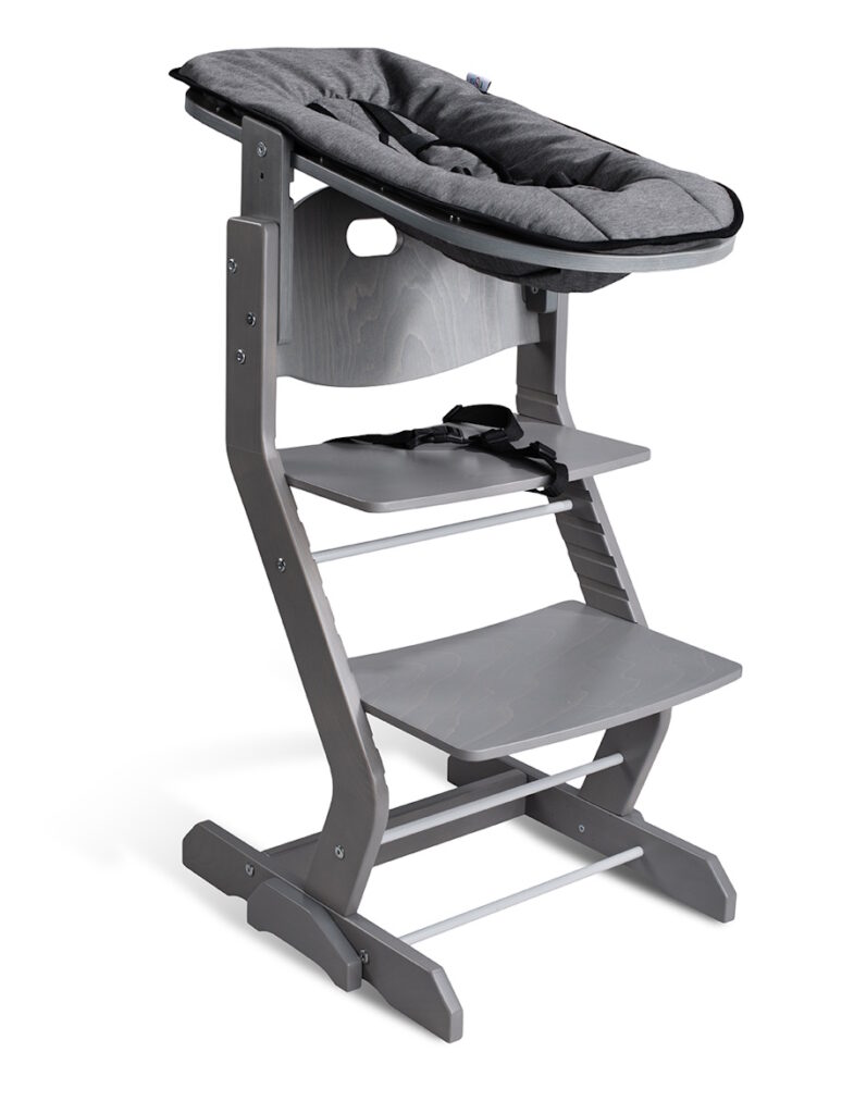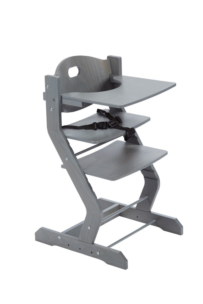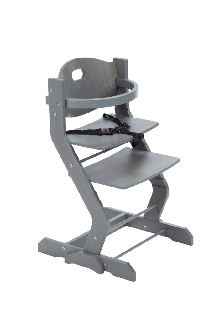 18. Højstol i massiv bøg grå inkl. bøjle og sele. Artikelnummer 101066.